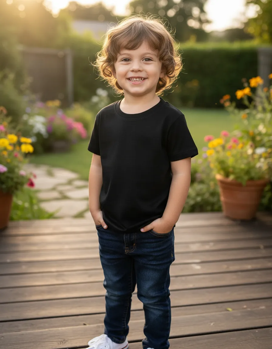 Camiseta infantil de cor lisa e unissex, é uma peça moderna e confortável para crianças. Feita de um material elástico que combina viscose e elastano, proporciona um ajuste confortável e flexível. Disponível em diversas cores sólidas, é uma opção prática e estilosa para o guarda-roupa infantil.