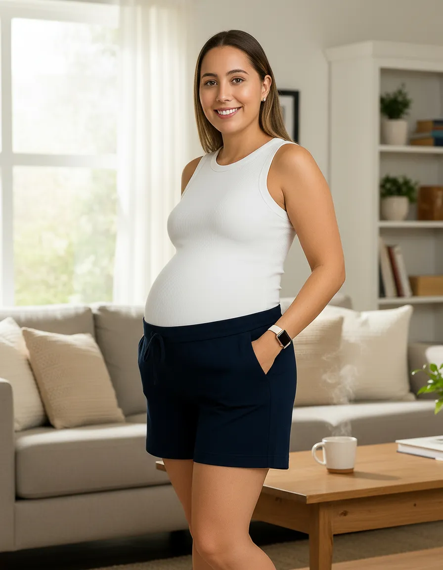 Short para gestante confortável e prático, feito em tecido Viscolycra Premium super macio e elástico. Perfeito para acompanhar você durante toda a gravidez e além!